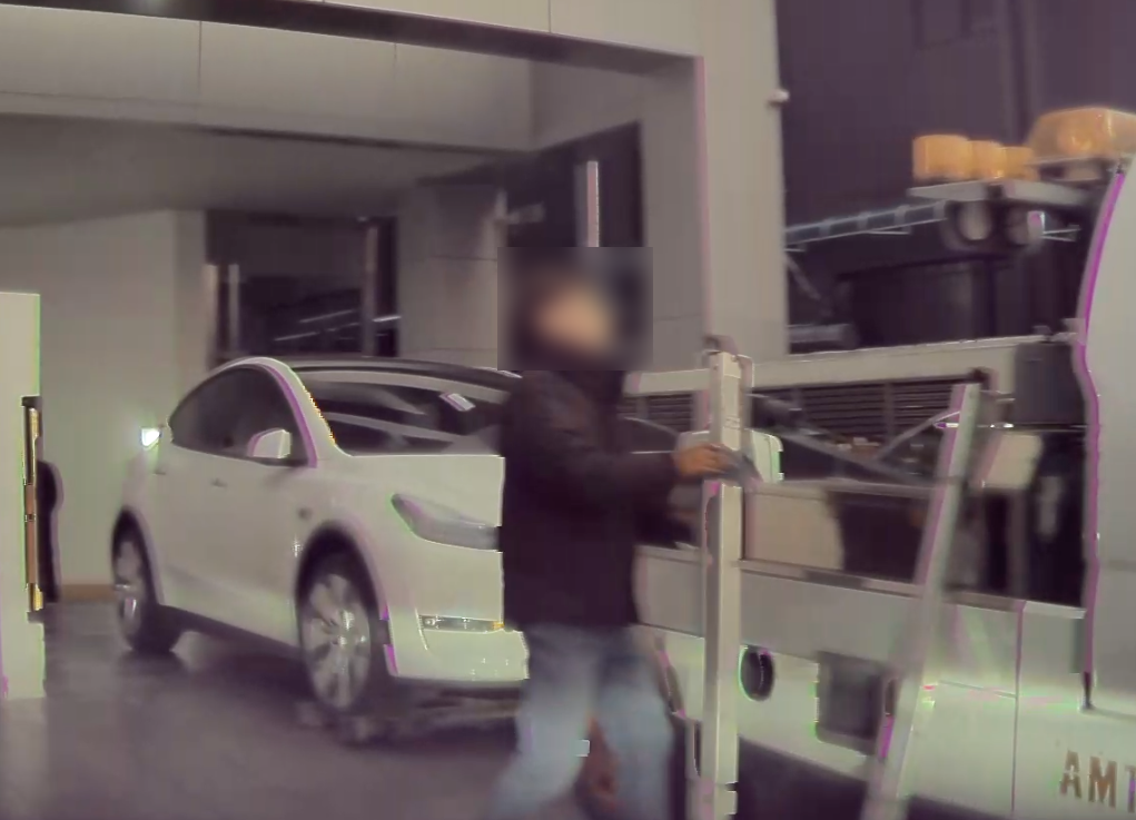 차량은 렉카에 실려 테슬라 서비스센터에 입고되었습니다.